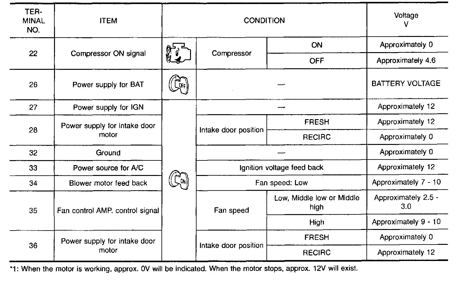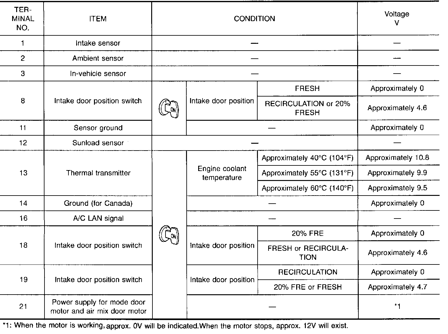 Measure voltage between each terminal and body ground by following "AUTO AMP INSPECTION TABLE".