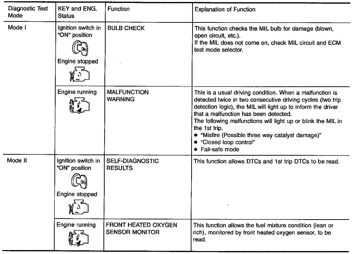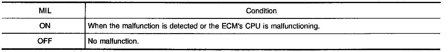 1. The MIL will light up when the ignition switch is turned ON without the engine running. This is a bulb check.