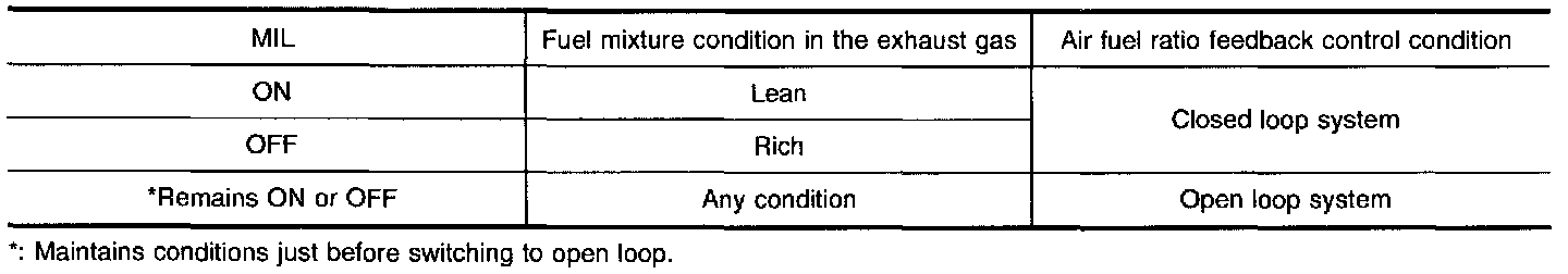 In this mode, the MIL displays the condition of the fuel mixture (lean or rich) which is monitored by the front heated oxygen sensor.