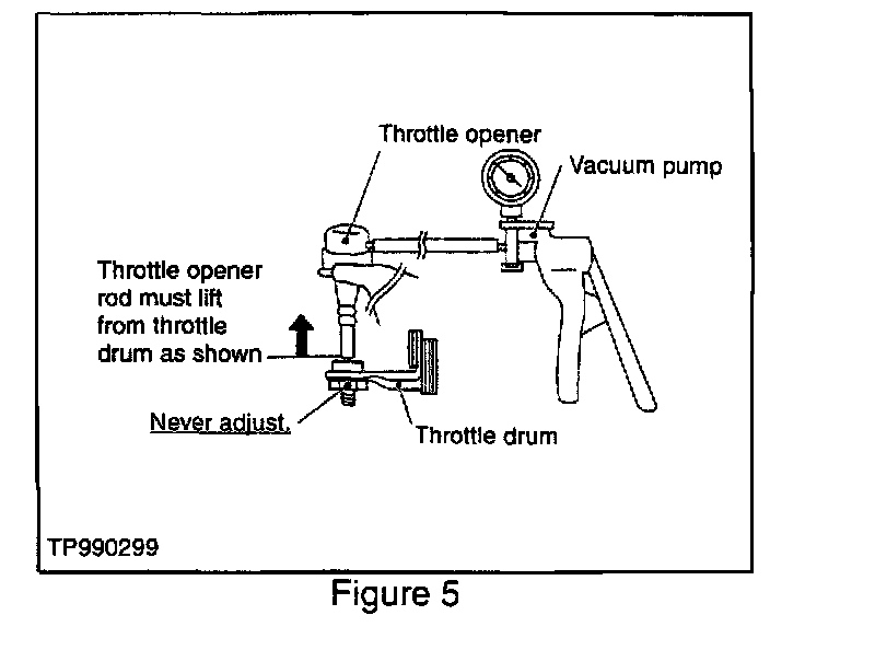 2. Raise the throttle opener rod OFF of the throttle drum as follows (refer to Figure 5):