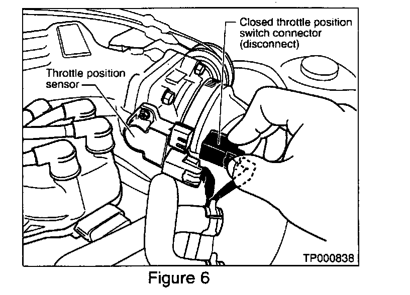 3. Disconnect the harness connector (see Figure 6) from the closed throttle position switch portion of the throttle position sensor (TPS).