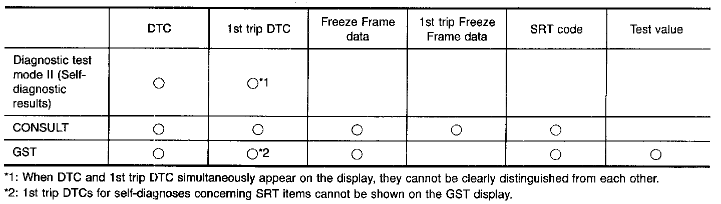 The ECM (ECCS control module) has an on board diagnostic system, which detects malfunctions related to engine sensors or actuators. The ECM also records various emission-related diagnostic information including: