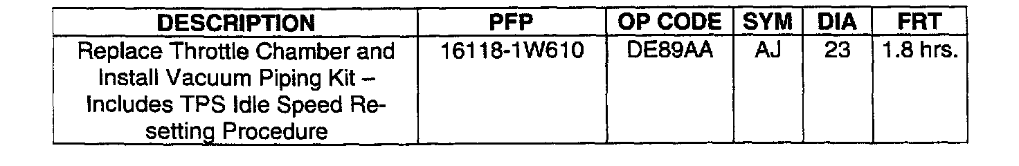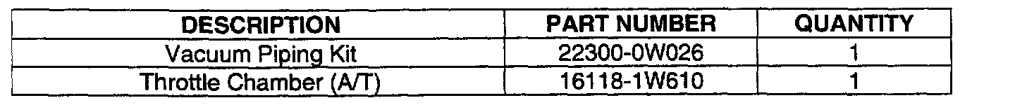 A new throttle chamber (with a throttle opener mechanism) and related components (see Figure 1) are now available to resolve this incident if it should occur. Refer to the Service Procedure for instructions on installing the new throttle chamber and related parts.