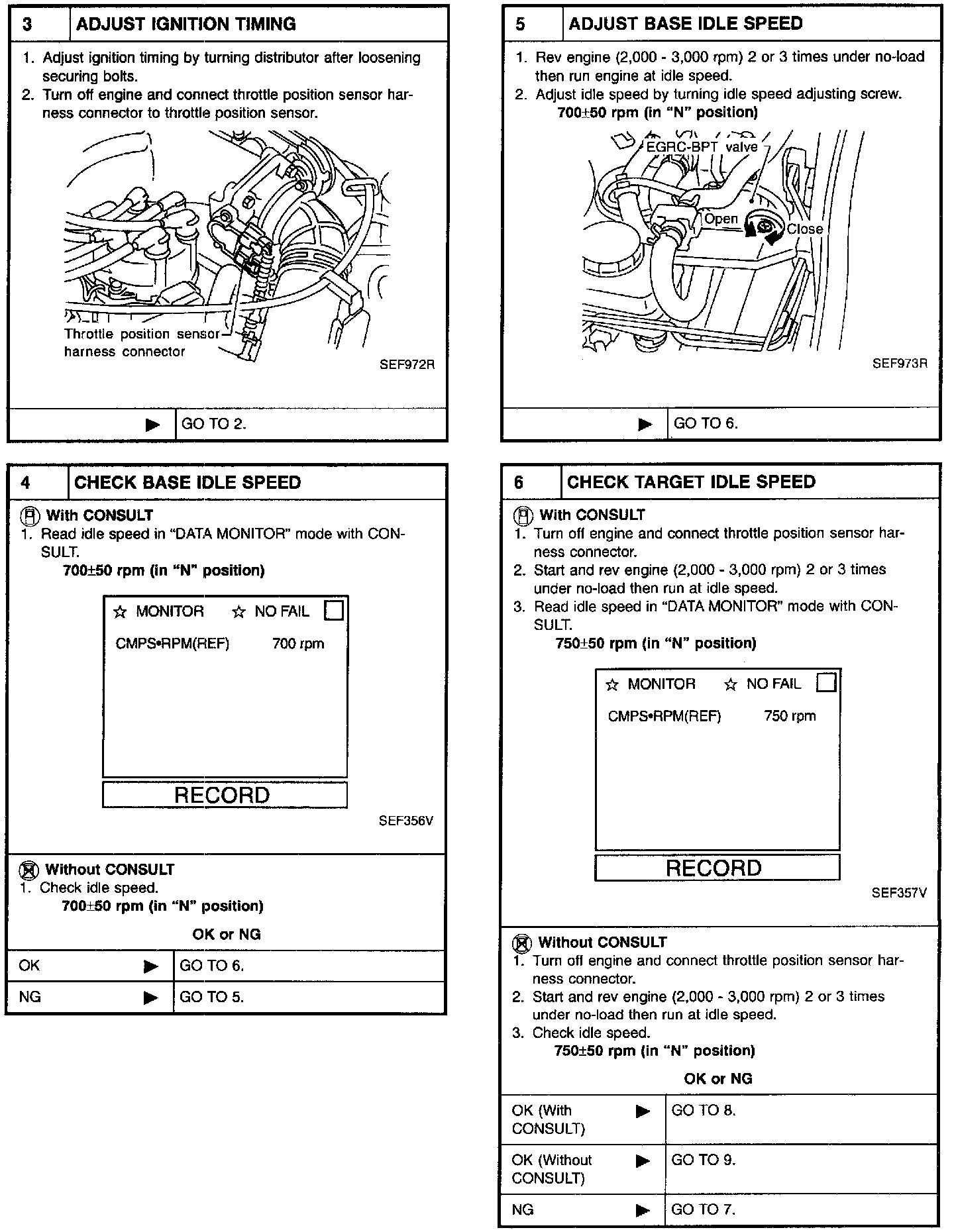 3. On automatic transmission equipped models, when checking idle rpm, ignition timing and mixture ratio, checks should be carried out while shift lever is in "N" position.