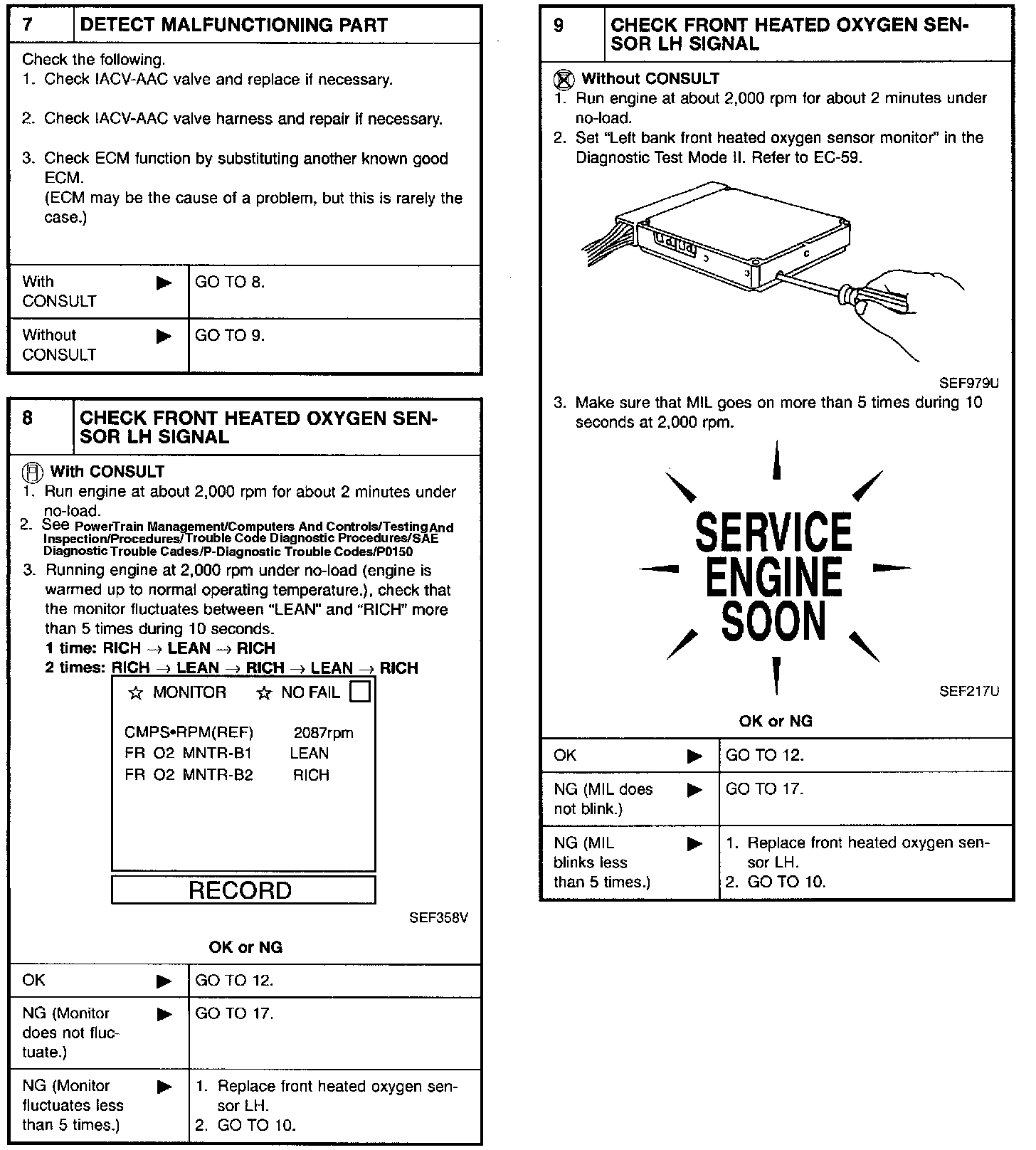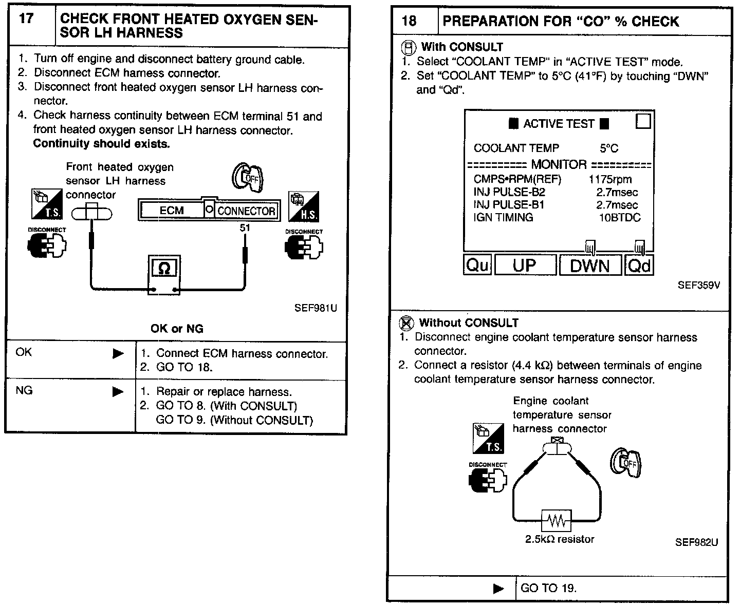 2. On air conditioner equipped models, checks should be carried out while the air conditioner is "OFF".