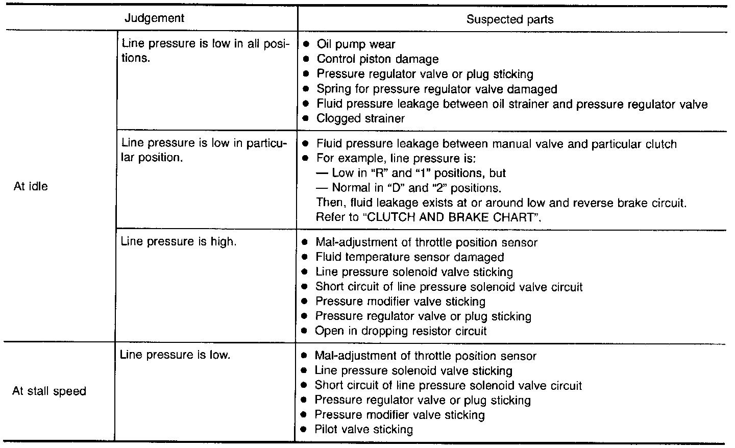 - When measuring line pressure at stall speed, follow the stall test procedure.