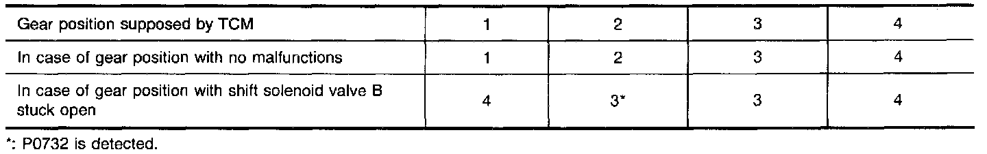 This malfunction will be caused when shift solenoid valve B is stuck open.