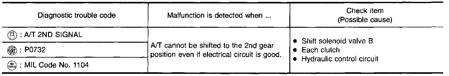 - This malfunction is detected when the A/T does not shift into second gear position as instructed by the TCM. This is not caused by electrical malfunction (circuits open or shorted) but by mechanical malfunction such as control valve sticking, improper solenoid valve operation, etc.