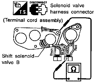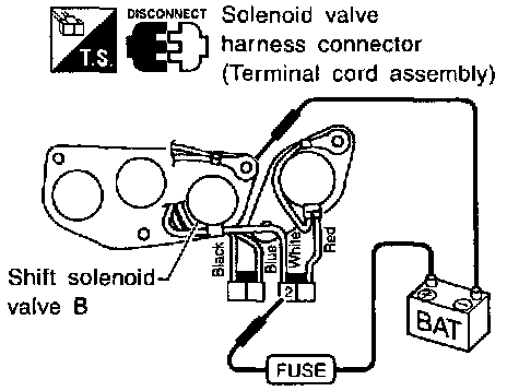 - Check solenoid valve by listening for its operating sound while applying battery voltage to the terminal 2 and ground.