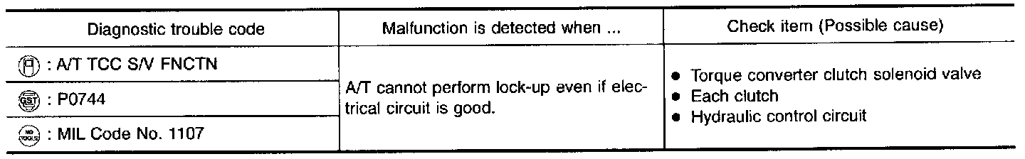 - This malfunction is detected when the A/T does not shift into fourth gear position or the torque converter clutch does not lock up as instructed by the TCM. This is not caused by electrical malfunction (circuits open or shorted) but by mechanical malfunction such as control valve sticking, improper solenoid valve operation, malfunctioning oil pump or torque converter clutch, etc.