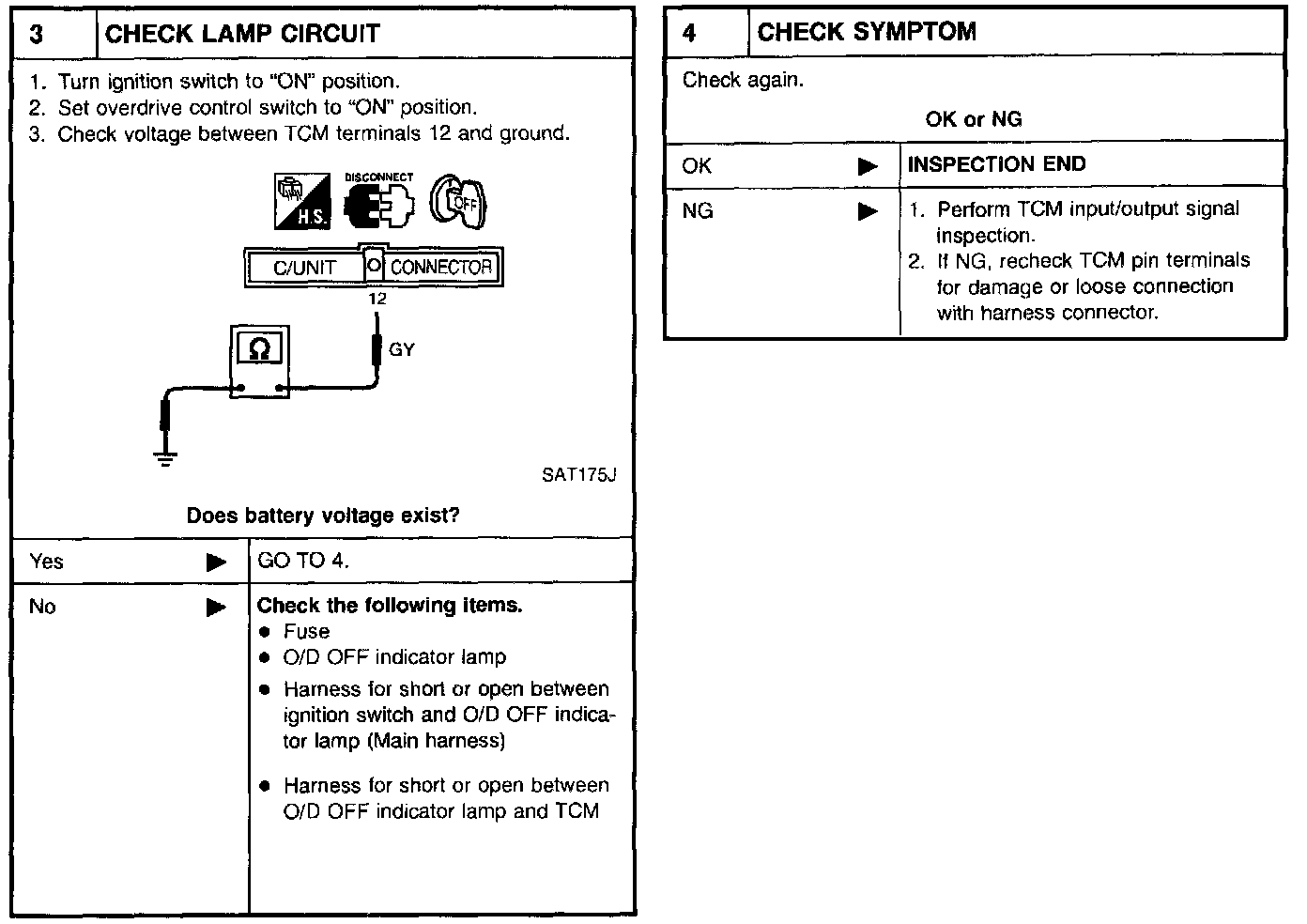 O/D OFF indicator lamp does not come on for about 2 seconds when turning