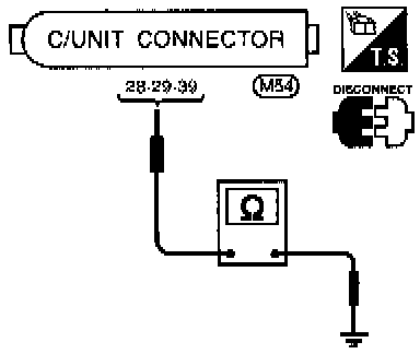 Check resistance between control unit connector terminals and ground.