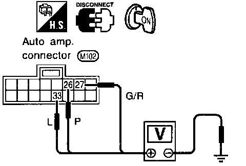 Measure voltage across terminal Nos. 26, 27, 33 and body ground.