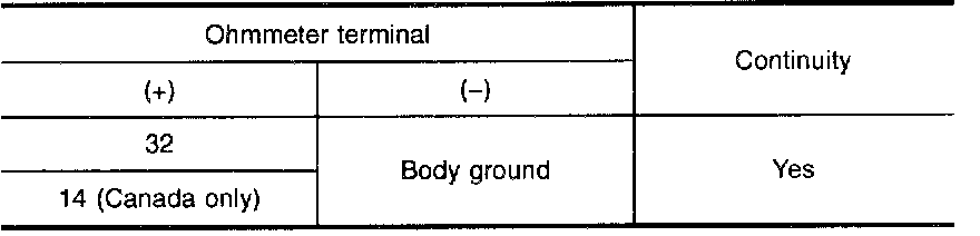Check for continuity between terminal Nos. 32, 14 and body ground.