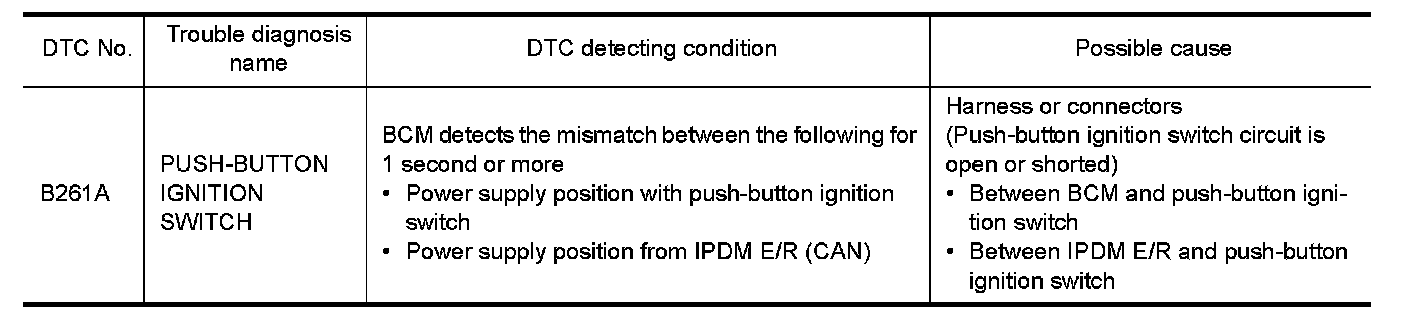 - If DTC B261A is displayed with DTC U1000, first perform the trouble diagnosis for DTC U1000. Refer to Security System.
