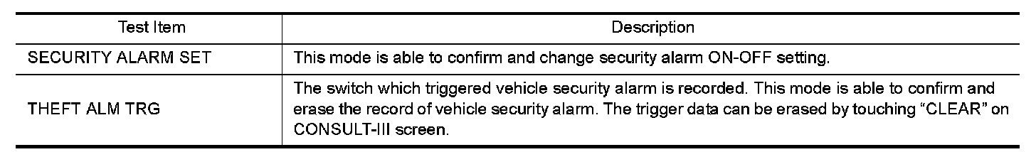 THEFT ALM : CONSULT-III Function (BCM - THEFT)
