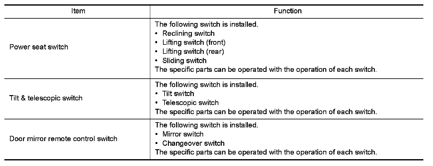 MANUAL FUNCTION : Component Description