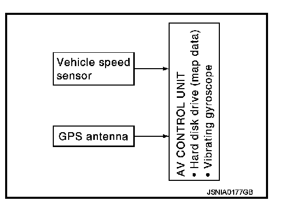 - AV control unit controls navigation function while GPS tuner has built-in map data, GYRO (angle speed sensor), on the HDD (Hard Disk Drive).