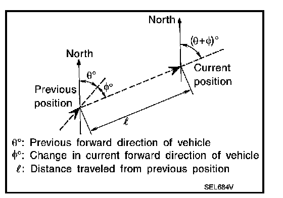 The navigation system periodically calculates the current vehicle position according to the following three types of signals.