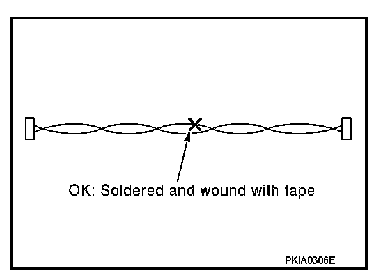 - Do not perform bypass wire connections for the repair parts. (The spliced wire will become separated and the characteristics of twisted line will be lost.)