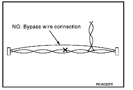 - Do not perform bypass wire connections for the repair parts. (The spliced wire will become separated and the characteristics of twisted line will be lost.)