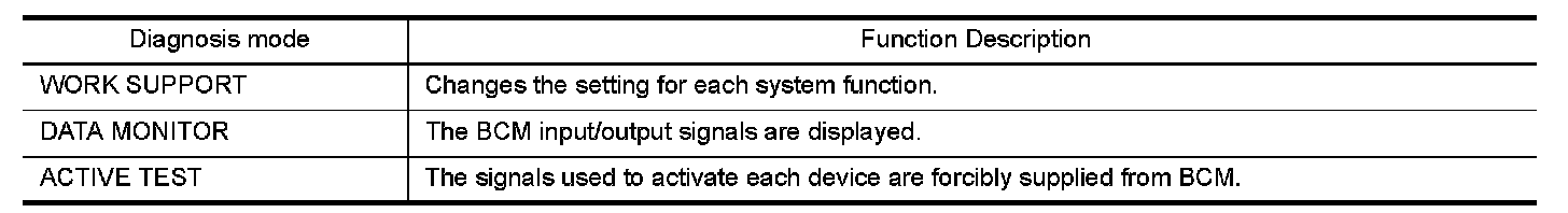 CONSULT-III performs the following functions via CAN communication with BCM.