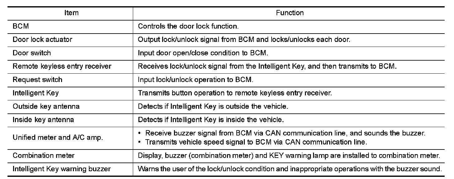 DOOR LOCK FUNCTION : Component Description