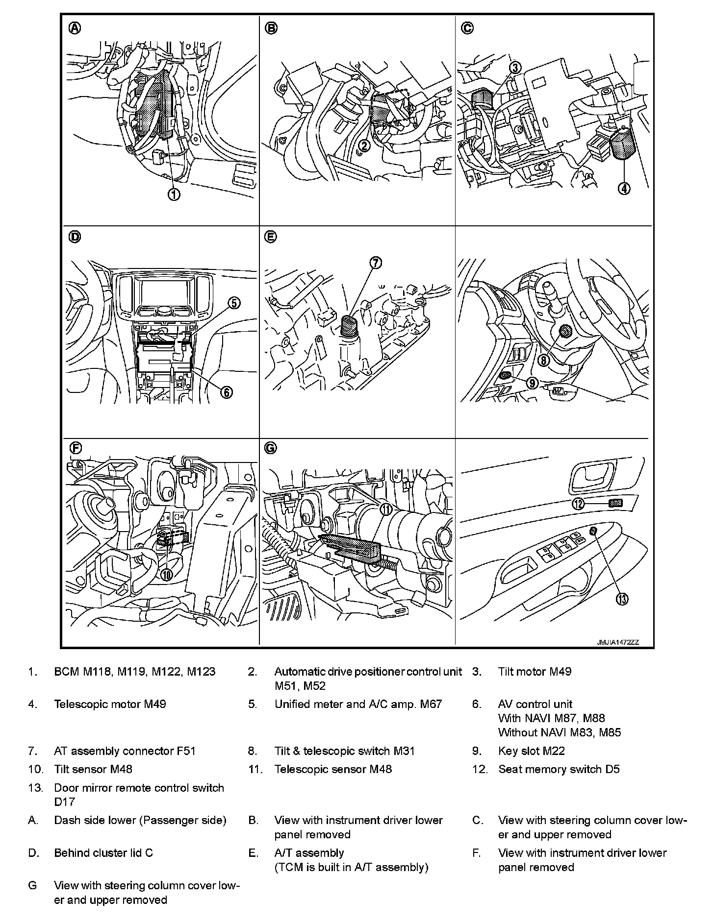INTELLIGENT KEY INTERLOCK FUNCTION : Component Parts Location