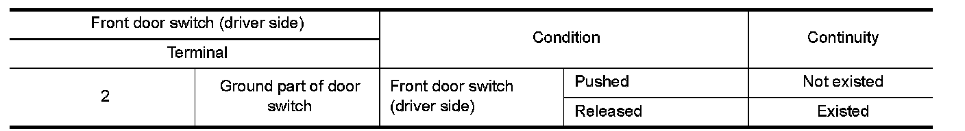 3. Check continuity between front door switch (driver side) terminals.