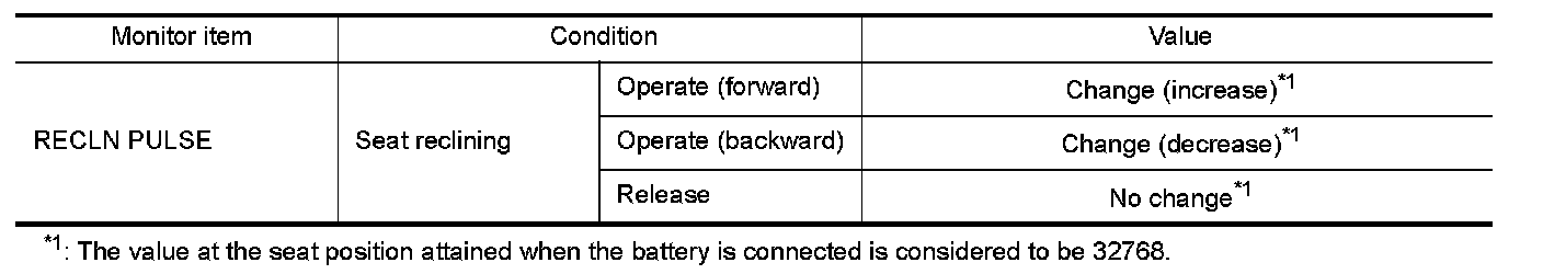 3. Check reclining sensor signal under the following conditions.