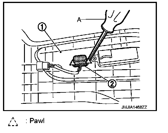 2. Remove the lumbar support switch (2) from the seat cushion outer finisher. With flat bladed screw driver (A).
