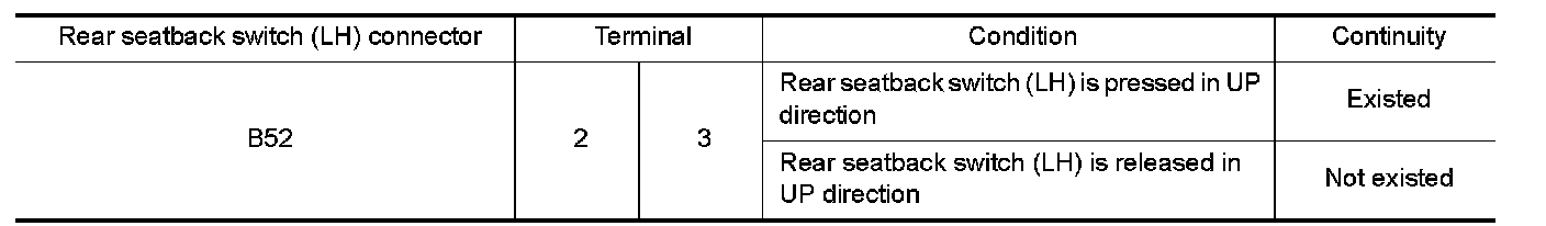 1.CHECK REAR SEATBACK SWITCH (LH)