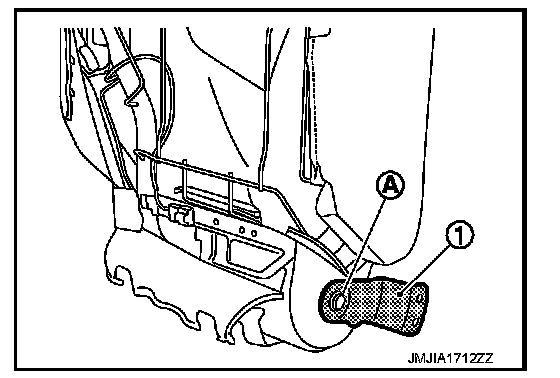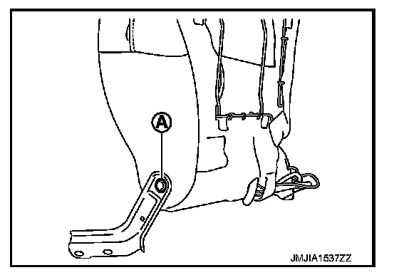 4. Remove the hinge bracket mounting bolt (A), and then remove the hinge bracket (1).
