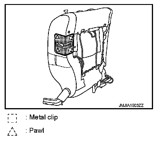 - Remove the metal clips and pawls, and then pull out seatback lock cover.
