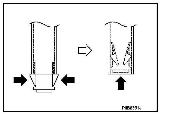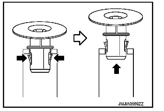 - Push the seatback lock knob finisher pawl upward though the seatback pad and the seatback frame to remove it.