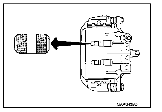 Check brake pad wear thickness from an inspection hole on cylinder body. Check using a scale if necessary.
