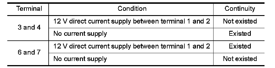 3. Check the continuity between ICC brake hold relay terminals under the following conditions.