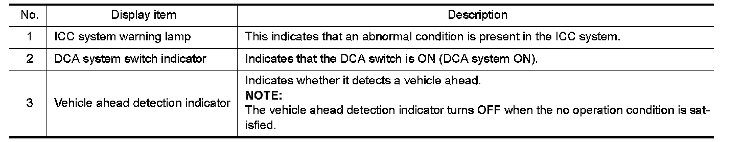 - If own vehicle comes closer to the vehicle ahead due to rapid deceleration of that vehicle or if another vehicle cuts in, the system warns the driver with the chime and DCA system display. Decelerate by depressing the brake pedal to maintain a safe vehicle distance if: