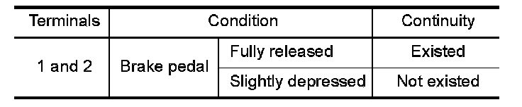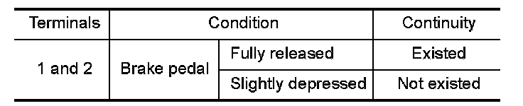 2. Check the continuity between ASCD brake switch terminals under the following conditions.