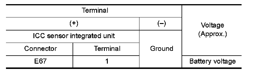 4. Check voltage between ICC sensor integrated unit harness connector and ground.