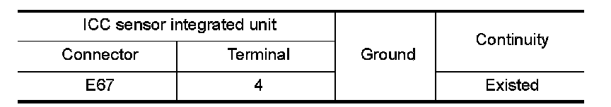 2. Check for continuity between ICC sensor integrated unit harness connector and ground.