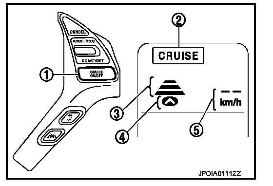 5. Check that the desired speed is set and vehicle-to-vehicle distance control mode control starts when releasing SET/COAST switch.