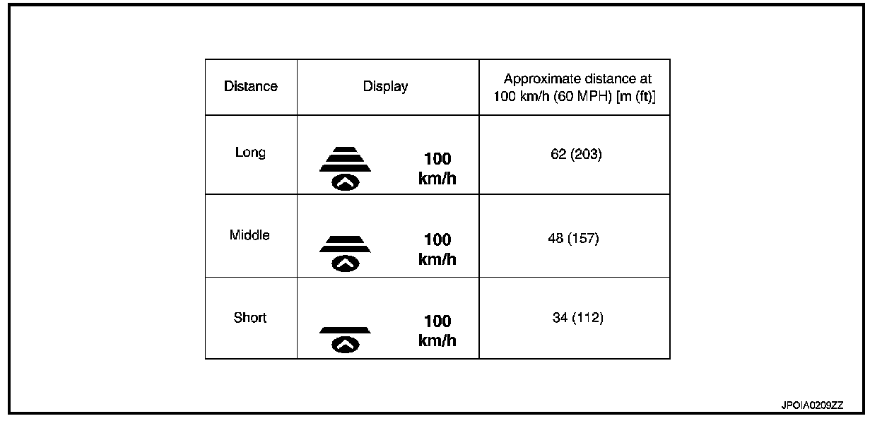 4. Check that the set distance indicator changes display in order of: (Long) to(Middle) to(Short).