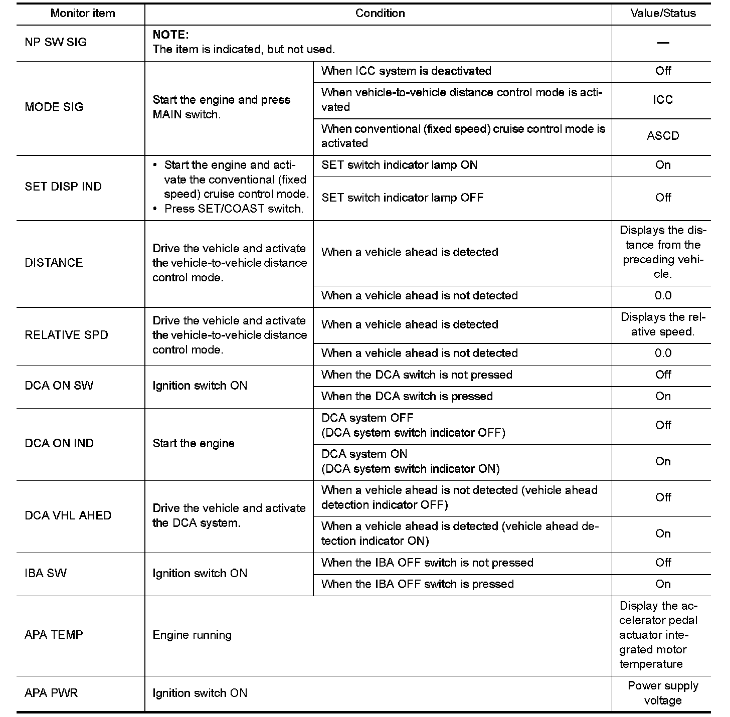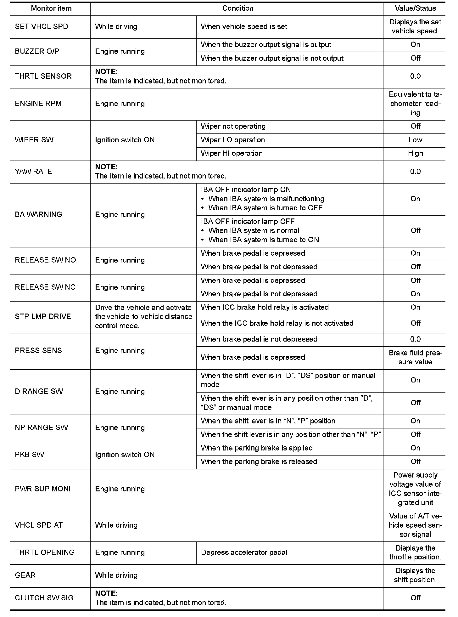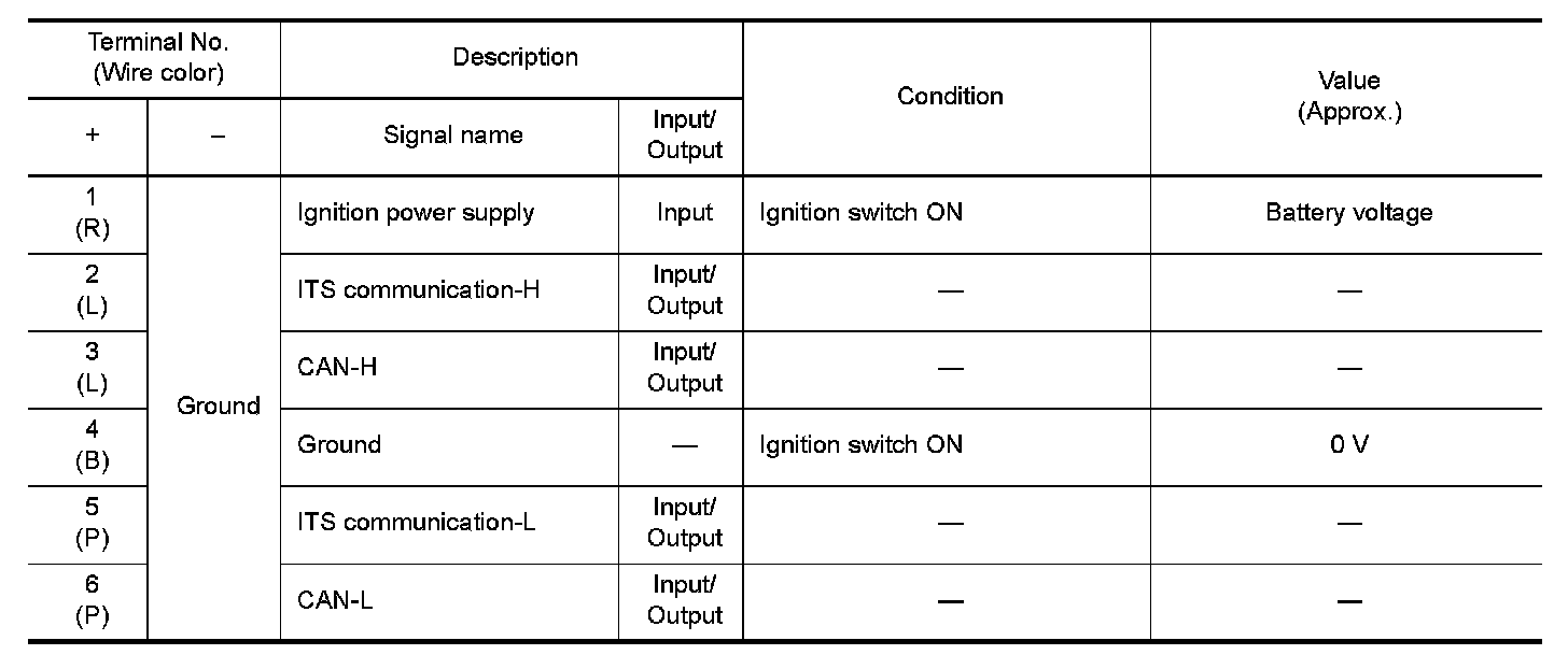 Pinout Values and Diagnostic Parameters