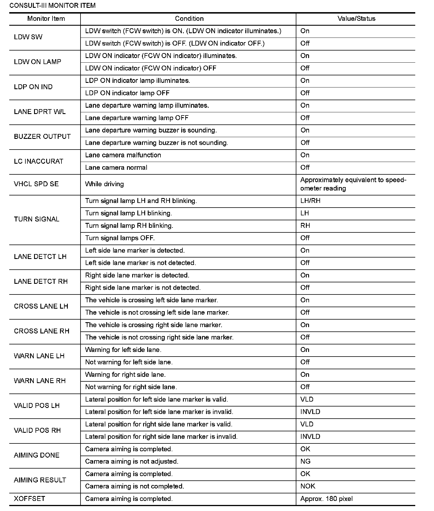 Pinout Values and Diagnostic Parameters