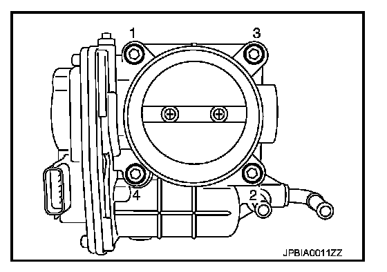 - Viewed from the air duct side, order of tightening mounting bolts of electric throttle control actuator (bank 2) is the same as that of the electric throttle control actuator (bank 1).