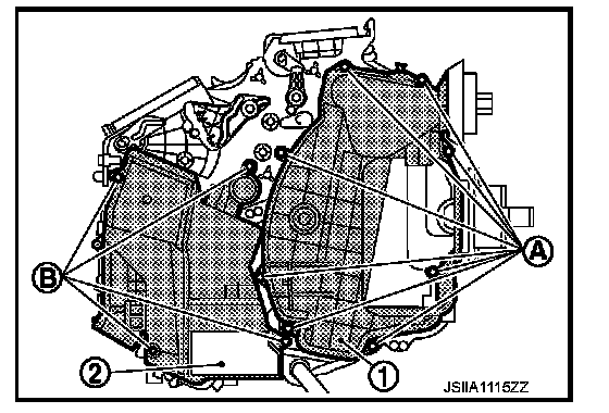 2. Remove mounting screws (B), and then remove foot duct (left)