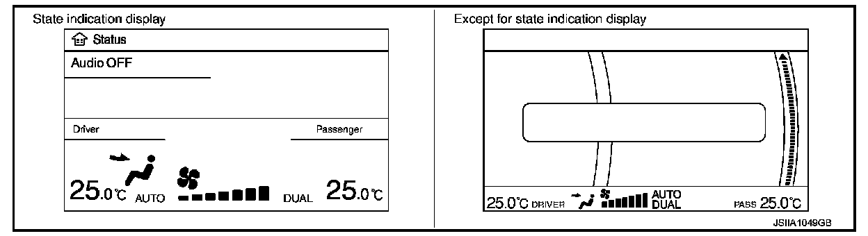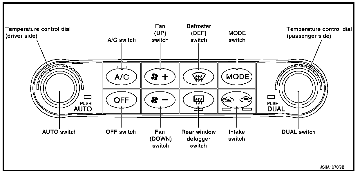 - When the DUAL switch indicator is OFF, the driver side outlet and setting temperature is applied to both sides.