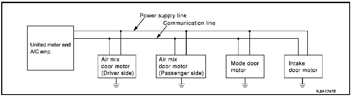 A small network is constructed between the unified meter and A/C amp., mode door motor, air mix door motors and intake door motor. The unified meter and A/C amp. and motors are connected by data transmission lines and motor power supply lines. The LAN network is built through the ground circuits of each door motor.