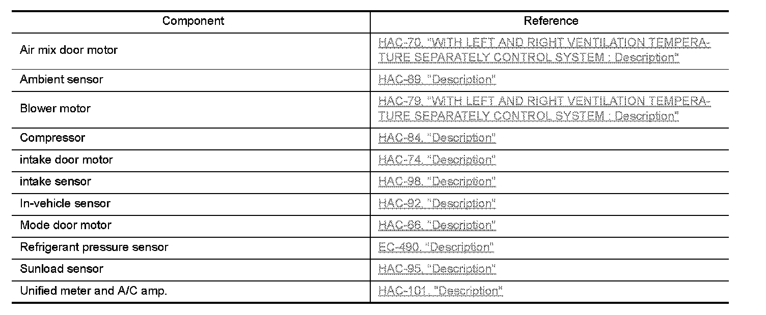 WITH LEFT AND RIGHT VENTILATION TEMPERATURE SEPARATELY CONTROL SYSTEM : Component's role